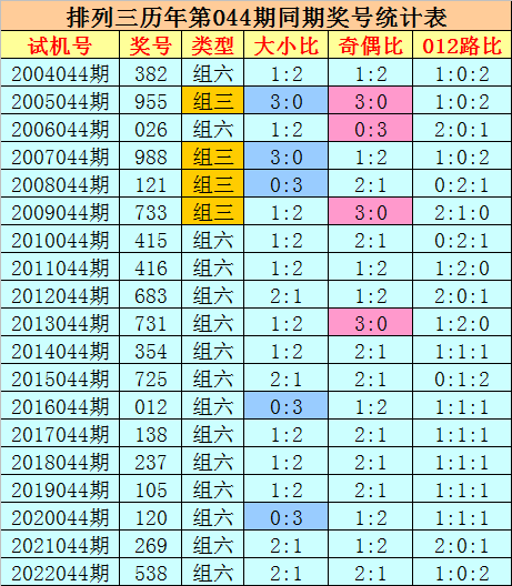 组选类型保举:历史上陈设三第044期同时奖号中,组六出现15期,组三出现4次,本年第044期展望奖号为组六号码。